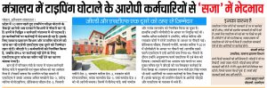 भोपाल। मप्र सरकार के सचिवालय में नौकरी कर रहे टायपिंग परीक्षा घोटाले के आरोपियों पर गाज गिरना तय है। पिछले हफ्ते मामला सामने आने के बाद सामान्य प्रशासन विभाग के अपर मुख्य सचिव ने संबंधित अधिकारियों ने रिपोर्ट मांगी थी। इसके बाद जीएडी के उपसचिव माधवी नागेन्द्र ने जांच पेश कर दी है। इसके बाद 9 आरोपियों में से 6 पर भी निलंबन की गाज गिरना तय है। जबकि 3 आरोपी पहले ही निलंबित किए जा चुके हैं। यहां बता दें कि इस संंबंध में ‘अग्निबाणÓ ने जीएडी एवं एसटीएफ के हवाल से पिछले हफ्ते खबर प्रकाशित की थी। इसके बाद से विभाग ने आरोपियों पर समानता के आधार पर कार्रवाई की तैयारी की है। निलंबित कर्मचारी शैलेन्द्र पांडे ने मुख्यमंत्री एवं मुख्य सचिव को यह आवेदन दिया है। इसके बाद जीएडी और एसटीएफ हरकत में आए। जीएडी के जो अधिकारी आरोपियों पर कार्रवाई करने में एसटीएफ को पत्र लिखने की खानापूर्ति कर रहे थे, उन्होंने कार्रवाई प्रतिवेदन तैयार कर दिया है।