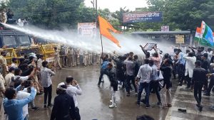 इन्दौर। कोरोना काल के बाद शक्ति प्रदर्शन करते हुए कांग्रेस (Congress) ने आज आगामी त्योहारों (Upcoming Festivals) को धूमधाम से मनाने के लिए प्रशासन (Administration) से अनुमति मांगने के लिए मौन चल आन्दोलन का आव्हान किया था। मौन जुलूस (Silent Movement) के रूप में कलेक्टर कार्यालय पहुंचे कांग्रेसियों पर पुलिस प्रशासन (Police Administration) ने लाठियां भांजते (Sticks Niece) हुए उन पर वाटर केनन (Water Cannon) का प्रयोग किया जिससे दर्जनों कार्यकर्ता घायल हो गए।