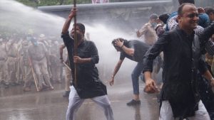 स्थिति को नियंत्रण में करने के लिए पुलिस ने पहले कांग्रेसियों पर पहले बगैर किसी सूचना के अचानक लाठीचार्ज कर दिया जिससे वहां पर अफरा-तफरी की स्थिति पैदा हो गई। लाठीचार्ज के ठीक बाद पुलिस ने कांग्रेस कार्यकर्ताओं पर वाटर केनन से पानी की तेज बौछारे फेंकना शुरू कर दिया जिससे असंतुलित होकर गई लोग सड़क पर गिर कर तो कई कार्यकर्ता पुलिस की लाठियों का शिकार होकर घायल हो गए।