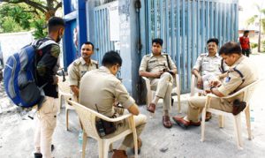 आट्र्स एंड कामर्स कालेज के बाहर तैनात जवान