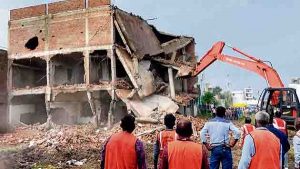 की एक और टीम नगर निगम अधिकारी अनूप गोयल (Municipal Corporation Officer Anoop Goyal)  और अश्विन जनवदे (Ashwin Janavade) के नेतृत्व में पीपल्याराव (Pipalya Rao area) क्षेत्र में पहुंची। वहां खसरा नंबर 393 पर लस्सन के खेत में पांच मकान पहले से ही अवैध रूप से बना लिए गए थे। वहां लोगों का रहवास होने के कारण निगम ने कार्रवाई नहीं की, लेकिन संजय राठौर (Sanjay Rathor) और अन्य द्वारा बनवाई जा रही जी प्लस 2 की इमारत को ढहाने की कार्रवाई शुरू कर दी। उक्त जमीन गुटकेश्वर मंदिर (Gutkeshwar temple)  समिति की है, जहां लोगों द्वारा अवैध निर्माण (illegal construction) शुरू कर दिए गए थे। पांच मकान पहले से ही बनकर तैयार थे, जहां लोगों का रहवास होने के कारण प्रशासन और निगम के अधिकारियों ने कार्रवाई नहीं की, लेकिन वहां बन रही एक नई इमारत (building) को तोडऩे की कार्रवाई शुरू कर दी गई। निगम अधिकारियों के मुताबिक गुटकेश्वर मंदिर की जमीन के खसरा नंबर 393 पर अवैध रूप से कई निर्माण होने की शिकायतें आ रही थीं। पिछले दिनों प्रशासनिक अधिकारियों ने इस मामले में जांच भी शुरू की थी। वहां संजय राठौर और अन्य के द्वारा जमीन पर एक इमारत का निर्माण किया जा रहा था, जो जी प्लस 2 बन चुकी थी। अधिकारियों ने वहां पहुंचने के बाद काम कर रहे मजदूरों को हटवाया और पोकलेन व जेसीबी लगाकर इमारत तोडऩा शुरू कर दी। कार्रवाई के दौरान भारी संख्या में पुलिस बल (Police Force) और निगम का अमला भी मौजूद था।