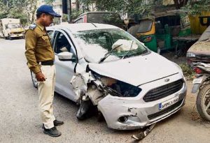 इंदौर। एक कार बेकाबू होकर डिवाइडर (Divider) से टकरा गई। एयर बैलून (Air Balloon) खुलने से कार सवारों की जान बच गई।