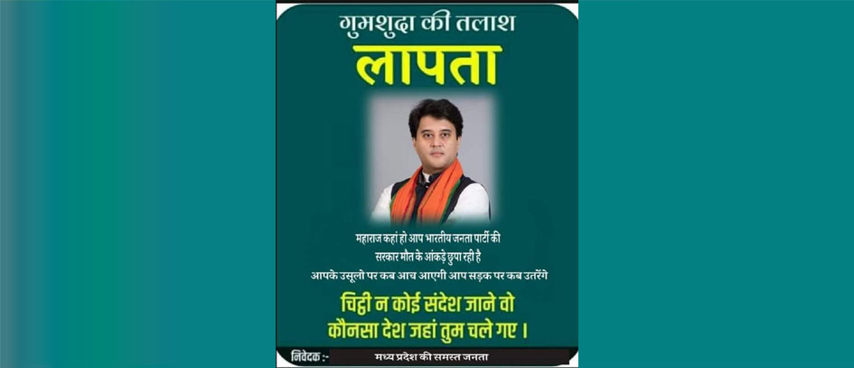 • Congress विधायक ने Jyotiraditya Scindia को बताया लापता