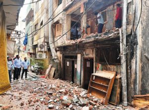 मोरसली गली में निगम ने ढहाया खतरनाक मकान