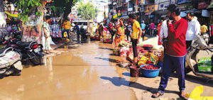 इंदौर (Indore)। शहर के मध्य क्षेत्र राजबाड़ा में सडक़ों पर दुकान लगाए बैठे दुकानदारों की धनतेरस पर उस समय पानी फिर गया, जब एक फूटी पाइप लाइन से पूरी सडक़ पर बहे नर्मदा के पानी से कीचड़ मच गया और ग्राहक तो दूर दुकानदारों तक के बैठने तक की समस्या हो गई।