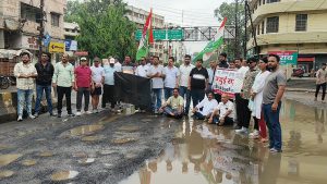 पूर्व पार्षद दिलीप कौशल, रवि गुरुनानी ने बताया कि नगर निगम द्वारा मधुमिलन चौराहा से लेकर अग्रसेन प्रतिमा चौराहा तक सडक़ को चौड़ा करना और उसका नया निर्माण करना निश्चित किया गया था। इसके बाद में चौड़ाई को लेकर हुए विवाद के कारण इस सडक़ का कार्य अभी तक शुरू नहीं हो सका है। ऐसी स्थिति में सडक़ की बदहाली को दूर करने के लिए नगर निगम द्वारा पेचवर्क करवाया गया। निगम के इंजीनियरों की देखरेख में ठेकेदार के माध्यम से यह इतना अच्छा पेचवर्क हुआ कि मात्रा 5 दिन के अंदर उखड़ गया है। इस पेचवर्क को लेकर आज सुबह कांग्रेस कार्यकर्ताओं ने प्रदर्शन का नगर निगम से इस कार्य का हिसाब मांगा है। कांग्रेस नेताओं का कहना है कि नगर निगम द्वारा पेचवर्क कार्य के लिए करोड़ों रुपए मंजूर किए गए। इस कार्य को करने वाले ठेकेदार को 5 करोड़ रुपए का भुगतान किया गया और अब काम इस तरह से इतना घटिया किया जा रहा है।