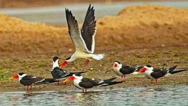 मुरैना (Morena)। चंबल के विभिन्न घाटों पर इन दिनों विुलप्त होते इंडियन स्कीमर्स (Indian Schemers) की चहल पहल दिखाई दे रही है। शिकार पर बाज की तरह टूटना, जलधार में कलाबाजी इस पक्षी की पहचान है। गर्मी के तेवर तीखे होते ही इस पंक्षी ने चंबल की वादियो को अपना ठिकाना बनाना शुरू कर दिया है। पिछले 10 साल के भीतर ही चंबल का साफ पानी को ऐसा भाया कि इस पक्षी ने चंबल को प्राकृतिक रहवास बना लिया है। ये सुंदर पक्षी वर्ष के करीब नौ महीने तक चंबल नदी के रेतीले टापुओं पर कलरव करते और पानी की सतह पर आसानी से देखे जा सकते हैं। जुलाई-अगस्त महीने में यहां से उडकऱ ये गुजरात व आंध्र प्रदेश से लेकर पड़ोसी देश बांग्लादेश तक चले जाते हैं। इंडियन स्कीमर को दुर्लभ मानते हुए विलुप्त पङ्क्षरंदों की श्रेणी में रखा गया है। दुनिया भर में इनकी संख्या 15 हजार से भी कम हैं। वर्तमान में 600 से लेकर 700 तक इंडियन स्कीमर चंबल मेंं देखे जा रहे हैं।सेंचुरी विभाग ने इनको जीवन देने के लिए विशेष व्यवस्थाएं की है।