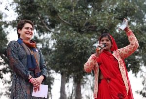 फिरोजाबाद। कांग्रेस की राष्ट्रीय महासचिव एवं प्रदेश प्रभारी प्रियंका गांधी ने बुधवार को फिरोजाबाद के सिरसागंज में ‘लड़की हूं लड़ सकती हूं’ कार्यक्रम के तहत नारी शक्ति से संवाद किया। इस दौरान युवती श्वेता सिंह ने सवाल किया कि आप इंटर पास करने पर स्मार्ट फोन एवं ग्रेजुएशन के बाद स्कूटी देंगी यह मैं कैसे भरोसा करूं। प्रियंका गांधी बोली भरोसा तो करना पड़ेगा। मैंने शक्ति विधान बनाया है गारंटी कार्ड दूंगी। ताकि आपको उसमें जो वादे हैं उनको पूरा करूंगी।