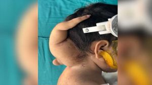 भोपाल: मध्य प्रदेश (Madhya Pradesh) की राजधानी भोपाल (Bhopal) में अजब-गजब वाकया देखने को मिला. यहां 3 साल की एक बच्ची (3-year-old Girl) के सिर से अजीबो-गरीब हाथ निकला हुआ था. यही नहीं कुछ इंसानी अंग भी शरीर से चिपके हुए थे. परिवार इसे भगवान का चमत्कार मान रहा था. इसलिए उन्होंने न ही बेटी का इलाज नहीं करवाया. बात तब बिगड़ी जब दो साल बाद बच्ची के शरीर पर चिपके अंग विकसित होने लगे. परेशान होकर परिवार अस्पताल पहुंचा. फिर ऑपरेशन हुआ तो डॉक्टर भी हैरान रह गए.