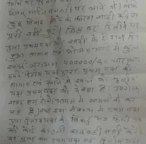 पनवाड़ी थाने के थानेदार ने सुलहनामा लिखवाया जिसके हिसाब से दोनों पक्षों ने एक-दूसरे के सभी सामानों, गहनों और पैसों को वापस किया। थानेदार विनोद कुमार ने बताया कि लड़की के फैसले को माना गया और शादी कैंसल हुई। दोनों पक्ष सुलहनामा पर राजी हो गए।