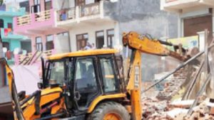 शहडोल । शहडोल (Shahdol) के ब्योम्हारी में रेत माफियाओं (Sand mafias) के खिलाफ शिकंजा कसते हुए प्रशासन (Administration) ने देर रात एसआई (SI) महेंद्र बागरी (Mahendra Bagri) को कुचलकर मारने वाले ट्रैक्टर चालक के घर को बुलडोजर से ध्वस्त कर दिया। कार्रवाई के दौराना यहां बड़ी संख्या में पुलिस फोर्स तैनात किया गया। वहीं पुलिस ने ट्रैक्टर चालक के बेटे को गिरफ्तार कर लिया है। साथ ही फरार ट्रैक्टर चालक गिरफ्तारी पर 30 हजार रुपए का इनाम घोषित किया गया है।