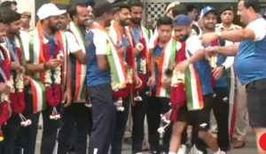 भारतीय हॉकी टीम के खिलाड़ियों ने वापसी के बाद दिल्ली एयरपोर्ट के बाहर जमकर जश्न मनाया। ढोल-नगाड़ों की थापों पर सब जमकर थिरके और पदक जीतने की खुशी मनाई। इस दौरान हॉकी इंडिया के महासचिव भोला नाथ सिंह ने पीआर श्रीजेश के समापन समारोह में ध्वजवाहक चुने जाने पर बात की। उन्होंने कहा, “वह (पीआर श्रीजेश) इसके हकदार थे (ओलंपिक के समापन समारोह में ध्वजवाहक बनने के लिए)। अगर भारत सरकार और भारतीय ओलंपिक समिति ने उन्हें यह अवसर दिया है, तो हॉकी इंडिया उनका शुक्रिया अदा करता है… यह एक शानदार जीत थी, लगातार दो पदक जीतना एक बड़ी उपलब्धि है। लेकिन, हमारा लक्ष्य फाइनल खेलना था, लेकिन रेफरी की गलती से अमित रोहिदास को बाहर बैठाने की वजह से हमें हार का सामना करना पड़ा और इसलिए हम कांस्य पदक के साथ यहां हैं, अन्यथा पदक का रंग बदल दिया जाता।”