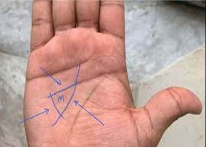 ज्योतिषाचार्य डॉ. अरविंद मिश्र ने बताया कि हाथ में मस्तिष्क रेखा एवं ह्रदय रेखा के मध्य में सूर्य पर्वत एवं शनि पर्वत की जड़ में और भाग्य रेखा, बुध रेखा और मस्तिष्क रेखा के संयोग से ये त्रिभुज बनता है. ये त्रिकोण जितना बड़ा होता है, उतनी अधिक सेविंग्स होती है. ऐसे व्यक्ति के पास भूमि, कई भवन और वाहन समेत भोग विलास के पर्याप्त साधन होते हैं. इनके संचित धन एवं संपत्ति में वृद्धि होती रहती है , बैंक में जमा पूंजी में इजाफा होता रहता है।