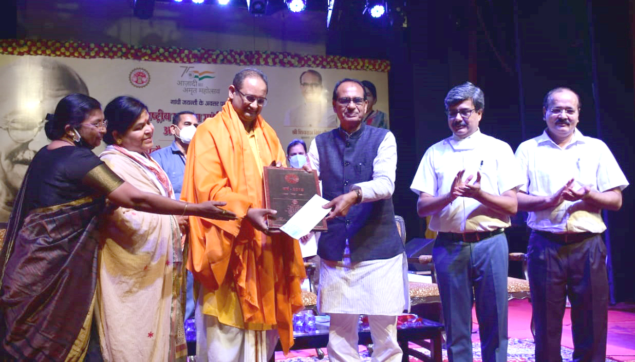 मुख्यमंत्री चौहान ने राष्ट्रीय महात्मा गांधी सम्मान में प्रत्येक संस्था को दस लाख रुपये की आयकर मुक्त राशि, सम्मान पट्टिका, शॉल और श्रीफल भेंट कर अखिल विश्व गायत्री परिवार के डॉ. चिन्मय पंडया एवं भटके विमुक्त विकास प्रतिष्ठान की अध्यक्ष डॉ. सुवर्णा रावल को सम्मानित किया। राष्ट्रीय महात्मा गांधी सम्मान किसी भी संस्था को सामाजिक कार्य क्षेत्र में प्रदान किये जाने वाला राज्य का महत्वपूर्ण सम्मान है।