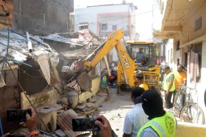 मकान तोड़ा। आज सुबह तहसीलदार और सीएसपी ओ.पी. मिश्रा तथा नगर निगम की टीम और भारी पुलिस बल हरीनगर पहुँचा। हरीनगर में बदमाश जीतू गुर्जर के मकान तथा मोती नगर स्थित धर्मेंद्र सिसोदिया का पक्का मकान था जिसे आज पुलिस में पूरी तरह तोड़ दिया। उल्लेखनीय है कि बदमाश जीतू गुर्जर एवं धर्मेंद्र सिसोदिया ने सरे बाजार गैरेज संचालक राजू द्रोणावत की हत्या कर दी थी और फरार हो गए थे। पुलिस ने वीडियो फुटेज के आधार पर इनको पहचान कर दोनों बदमाशों पर हजारों रुपए का इनाम रखा था।