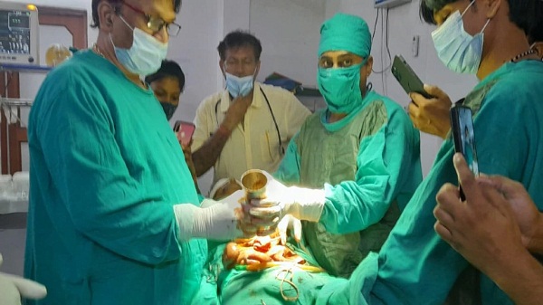 जिसमें उन्होंने एक गिलास जैसे आकृति दिखाई दी, उसके बाद डाक्टर उसे निकालने का प्रयास किया करीब एक घंटे तक डाक्टर ने ऑपरेशन किया. इस दौरान जब डाक्टर ने पेट में चीरा लगाया तो उन्होंने एक ग्लास दिखा, जिसके बाद डाक्टर ग्लास निकाला, अभी मरीज का आईसीयू में रखा गया, अभी भी उसकी हालत