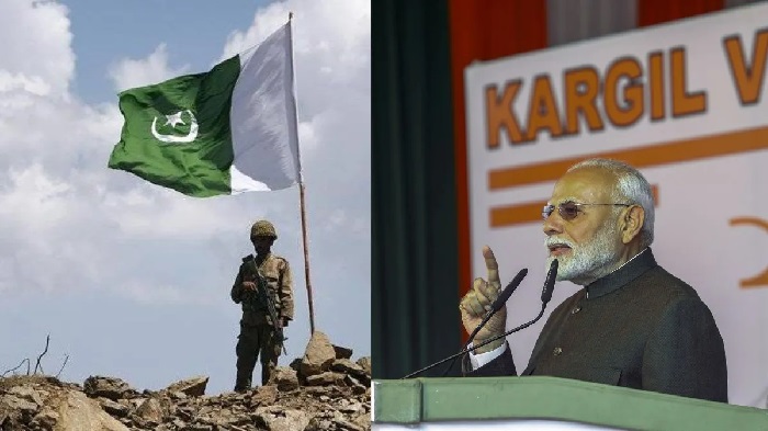 कारगिल युद्ध की जीत के रजत जयंती समारोह को संबोधित करते हुए शुक्रवार को प्रधानमंत्री ने कहा कि कारगिल युद्ध की जीत न तो किसी सरकार की जीत है और न ही किसी राजनीतिक समूह की । यह भारत के 140 करोड़ लोगों की जीत है। उन्होंने कहा कि वह उन बहादुर सैनिकों को सम्मान और श्रद्धांजलि देने आए हैं, जिन्होंने 1999 में दुश्मन को धूल चटाकर देश को गौरवान्वित किया था। उन्होंने देश की पिछली सरकारों की आलोचना करते हुए कहा कि उन्होंने बहादुरों के सम्मान में देश में वॉर मेमोरियल तक नहीं बनाया । पीएम मोदी ने कहा, “70 साल तक सरकार में बैठे लोग किसी न किसी बहाने युद्ध स्मारक बनाने की मांग को टालते रहे। उन्हें आज कारगिल युद्ध की जीत के जश्न में शामिल होना भी याद नहीं है। मुझे कारगिल विजय के रजत जयंती समारोह में शामिल होने का सौभाग्य मिला है। लोगों ने मुझे तीसरी बार चुना है। अगर वे सत्ता में आते, तो आज यहां नहीं होते।”