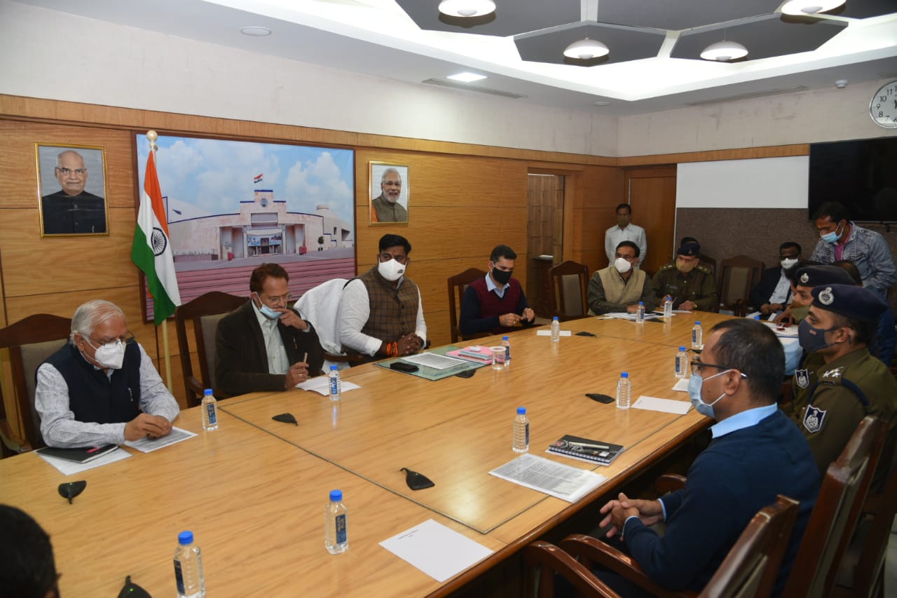 बैठक में सामयिक अध्यक्ष श्री रामेश्वर शर्मा ने प्रशासनिक अधिकारियों को निर्देश दिये कि कोविड-19 संक्रमण के संबंध में केन्द्र तथा राज्य के जारी दिशा-निर्देशों का पालन कराते हुये पूरे सत्र के दौरान व्यवस्थाएं की जाए । श्री शर्मा ने कहा कि विधायक विश्राम गृह के हर भवन में कोविड-19 की जांच की पूरी व्यवस्था की जाए । विधायक विश्राम गृहों एवं समीपस्थ स्थलों को सत्र प्रारंभ होने के दो दिवस पूर्व से प्रतिदिन सेनेटाइज कराया जाए । विधान सभा सदस्यों के साथ आने वाले स्टाप,साथियों एवं परिवारजनों का भी कोविड टेस्ट कराया जाए । बिना जांच के किसी को प्रवेश न दिया जाए । जो जिलों से जांच कराकर रिपोर्ट लायेंगे उन्हें पुन: जांच कराने की आवश्यकता नही होगी,लेकिन जिलों की रिपोर्ट प्रवेश दिवस से तीन दिन से ज्यादा पुरानी नही होना चाहिए । विधान सभा सत्र की कार्यवाही में शामिल होने के लिए वीडियो कांफ्रेसिंग के माध्यम से वर्चुअल सहभागिता की व्यवस्था की गई है । जो सदस्य अस्वस्थ्य है या नही आना चाहे वे वीडियोकांफ्रेसिंग से कार्यवाही में भाग ले सकते है । उनकी उपस्थिति मान्य की जायेगी ।