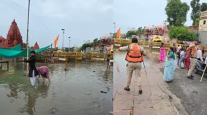 उज्जैन के रामघाट पर बड़ी संख्या में श्रद्धालु प्रतिदिन तर्पण पूजा अर्चना करने के लिए आते हैं. घाटों पर पानी बढ़ जाने की वजह से फिलहाल पूजा अर्चना रोक दी गई है. श्रद्धालुओं को बाहर निकलने क का कार्य भी शुरू हो गया है. रामघाट और आसपास के घाटों पर एक दर्जन से ज्यादा सुरक्षा कर्मियों को लाइफ जैकेट के साथ तैनात कर दिया गया है. पंडित अमर डिब्बे वाला के मुताबिक बाहर से आने वाले श्रद्धालुओं को जानकारी दे दी गई है कि शिप्रा नदी में पानी बढ़ गया है, इसलिए घाटों के ऊपर ही पूजा हो पाएगी.