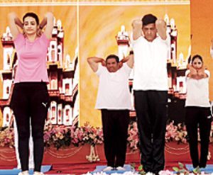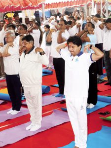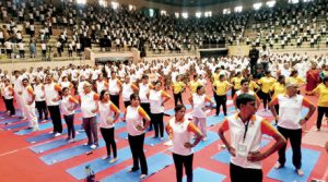 खेल प्रशाल में विदेशी प्रशिक्षकों की मौजूदगी में मनाया योग महोत्सव