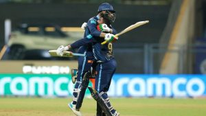 गुजरात टाइटंस (GT) के बल्लेबाज राहुल तेवतिया और राशिद खान ने आखिरी ओवर में तूफानी बल्लेबाजी करते हुए हार के जबड़े से जीत छीन ली. गुजरात टाइटंस को आखिरी ओवर में जीत के लिए 22 रन चाहिए थे. राशिद खान और राहुल तेवतिया ने आखिरी ओवर में 4 छक्के लगाकर गुजरात टाइटंस को जीत दिला दी.