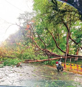 कर्बला के समीप सडक़ पर गिरा पेड़, ई-रिक्शा चालक घायल…कलेक्टोरेट से महू नाका तक तीन घंटे जाम में फंसे कई वाहन चालक