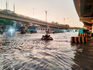 शहर के कई चौराहे तालाब बने, लोगों के वाहन फंसे