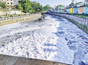 इन्दौर। पिछले दो दिनों से कान्ह नदी (Kanh River) के कई हिस्से फिर से केमिकलयुक्त (Chemicalized) पानी (Water) से अटे पड़े हैं। झागयुक्त (Foamy) पानी से नदी (River) का हिस्सा ही अलग नजर आ रहा है। पूर्व में निगम (Corporation) की टीमों ने सांवेर रोड (Sanwer Road) की कई फैक्ट्रियों (Factories) पर नदी के हिस्सों में केमिकलयुक्त पानी छोडऩे के मामले को लेकर तालाबंदी कर दी थी, मगर उसके बावजूद फिर से यही स्थिति बनने लगी है।