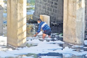 सांवेर रोड क्षेत्र में कई फैक्ट्रियों पर कार्रवाई के बावजूद नदी में फिर से आ रहा गंदा पानी