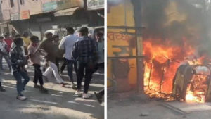 छत्रीपुरा में पटाखे फोड़ने की बात को लेकर विवाद हुआ। दिखते-दिखते ही बड़ी संख्या में लोग घटना स्थल पर एकत्र हो गए। इसके बाद लोग छत्रीपुरा थाने के पास पहुंच गए, इसी दौरान कुछ ने वहां खड़ी गाड़ियों में जमकर तोड़फोड़ कर दी। कुछ वाहनों में आग लगाने की भी खबर है। वीडियो में एक कार में लगी आग को बूझाते हुए भी दिखाया गया है।
