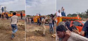 ये पूरी घटना दावणगेरे (Davanagere) की है. यहां पीएम मोदी का रोड शो निकाला जा रहा था. सड़क के दोनों तरफ भीड़ जुटी थी और नारेबाजी चल रही थी. इसी बीच, शख्स ने भागकर पीएम तक पहुंचने की कोशिश की है. पीएम की गाड़ी के पास ये शख्स पहुंच गया था. बताया गया कि ये शख्स काफिले में घुसने की कोशिश कर रहा था. पीएम के इतने करीब पहुंच जाना गंभीर सवाल माना जा रहा है.