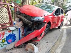 उज्जैन। उज्जैन शहर में दो कारों का तेज रफ्तार में टकराने का वीडियो (Video) सामने आया है। वीडियो में एक कार (Car) दूसरी को टक्कर मारने के बाद दुकान में घुस गई। वहीं, एक बार पार्क की रैलिंग में घुस गई। दोनों कार ड्राइवर (Driver) रेस लगा रहे थे। वो तो गनीमत रही कि हादसा सुबह करीब 8 बजे हुआ। दिन के समय मुख्य मार्केट में भीड़ रहती है। अगर यही हादसा दिन में होता, तो जनहानि हो सकती थी। पुलिस ने दोनों कार ड्राइवरों के खिलाफ केस दर्ज कर लिया है। घटना का वीडियो सीसीटीवी में कैद हो गया।
