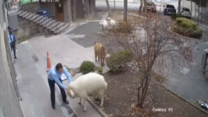 नेवसेहीर (तुर्की)। तुर्की के एक शहर से खेत के भागी कुछ भेड़-बकरियों ने हलचल मचा दी। खेत से भागने के बाद इन जानवरों ने गार्ड्स का भी पीछा किया। सोशल मीडिया में एक सीसीटीवी फुटेज वायरल हो रहा है, जिसमें एक बकरी, एक भेड़ और भेड़ के तीन बच्चों ने तुर्की के नेवसेहीर हॉल में खौफ पैदा कर दिया। ये भेड़-बकरी किसान हसन उनबुलन के थे और एक रात पहले ही अपने खेत से शहर की ओर भागे थे।