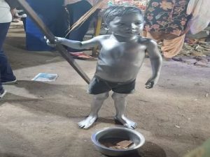 राजस्थान का यह बच्चा नोएडा में स्टैच्यू बनकर मांग रहा भीख, जानें क्या है वजह