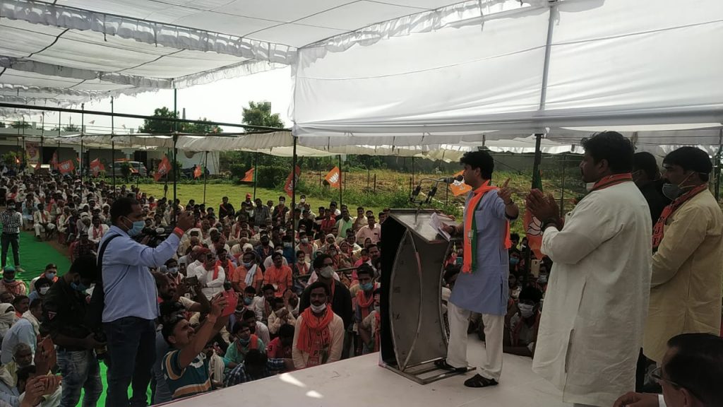 ज्योतिरादित्य सिंधिया ने कहा कि ग्वालियर-चंबल संभाग से कांग्रेस को कभी 18-20 से ज्यादा सीटें नहीं मिली थीं, लेकिन पिछले चुनाव में जनता ने उसे 26 सीटें दीं। लेकिन जिस सरकार को संभाग की जनता ने बनाया, प्रदेश की जनता ने बनाया, उस सरकार ने जनता की सेवा नहीं की। वो सरकार सिर्फ कुर्सी की सेवा में लगी रही। बड़ा भाई और छोटा भाई मिलकर सरकार को चलाते रहे। कमलनाथ सरकार के समय अवैध उत्खनन, तबादला उद्योग चलाए जा रहे थे। वल्लभ भवन में बोली लगती थी। जब आपका चुना हुआ विधायक वल्लभ भवन जाकर विकास के कामों के लिए कमलनाथ से मिलता था तो वे कहते थे खजाना खाली है, कुछ नहीं हो सकता । लेकिन जब से भाजपा की सरकार बनी है, तभी से विकास की ऐसी श्रृंखला शुरू हो गई है, जिसकी कल्पना भी नहीं की जा सकती। 15 महीने की कमलनाथ सरकार और पांच महीने की कमल की सरकार में फर्क साफ दिखाई दे रहा है। श्री सिंधिया ने कहा कि 15 साल बाद प्रदेश को नया मुख्यमंत्री मिला था, लेकिन कमलनाथ वल्लभभवन के एसी कमरों में बैठकर सरकार चलाते रहे, कभी आपके बीच नहीं आए।