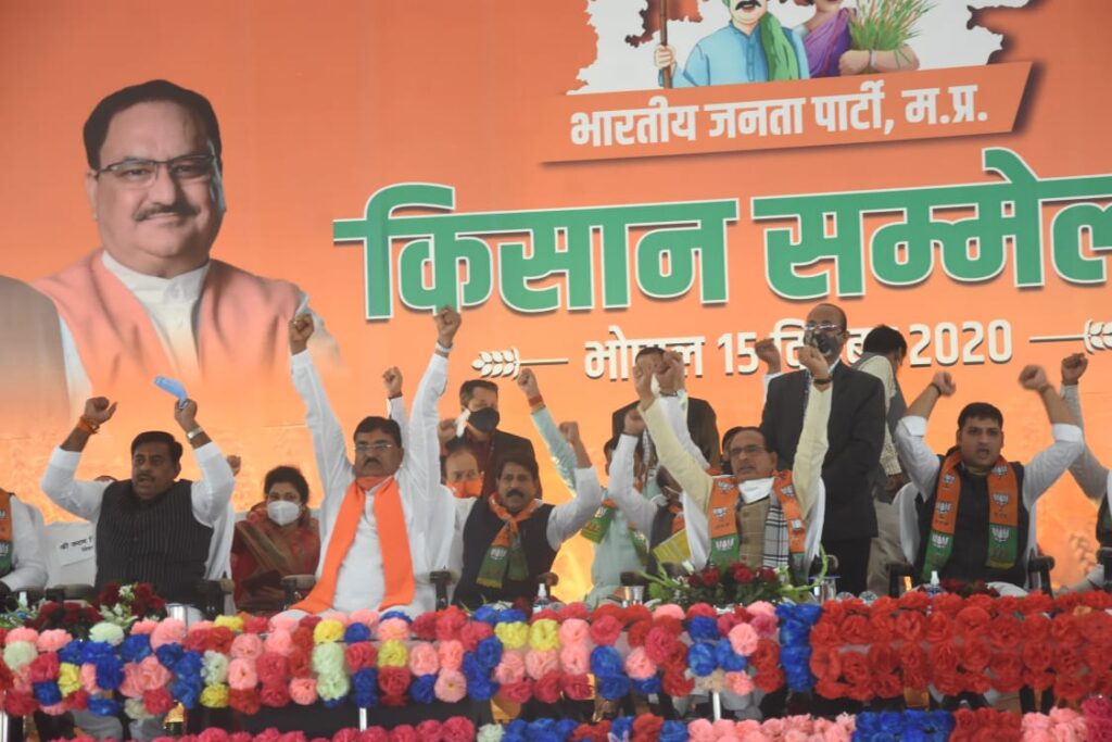भोपाल । केन्द्र सरकार द्वारा पारित तीन नये कृषि संबंधी कानूनों के समर्थन में मंगलवार को भोपाल के भेल दशहरा मैदान में किसान सम्मेलन का आयोजन किया गया। सम्मेलन में उपस्थित हजारों किसानों ने हाथ उठाकर कृषि कानूनों और मोदी सरकार का समर्थन किया तथा दलालों के हाथों में खेल रहे उन लोगों के खिलाफ नारेबाजी की, जो इन कानूनों का विरोध कर रहे हैं। मुख्यमंत्री शिवराजसिंह चौहान ने किसान सम्मेलन को संबोधित करते हुए कहा कि कमलनाथ मुझे किसान विरोधी कह रहे हैं। मैं किसान भाईयों से पूछना चाहता हूं कि कभी कमलनाथ के मुख्यमंत्री रहते आपके खाते में एक रुपया भी आया था क्या? जिन कांग्रेसियों ने किसानों को कर्जमाफी के नाम पर सरेआम ठगा, झूठे प्रमाण पत्र बांट दिये, उन्हें डिफाल्टर बना दिया और मुआवजे का एक पैसा नहीं दिया, वो अब खुद को किसानों का समर्थक बता रहे हैं। हमें किसान विरोधी कह रहे हैं।