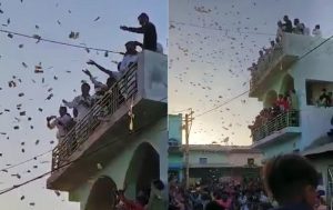 जब दूल्हे का वरघोडा निकला तो उनकी तरफ से आसमान से नोटों की बारिश की. इनमें 10 रुपये से लेकर 500 रुपये के नोटों की बरसात की गई. आसमान से बरस रहे नोटों को पाने की छटपटाहट गांववालों के अंदर देखी गई. गांव के लोग पैसा लूटने के लिए इधर उधर भाग रहे थे. यह नजारा देखकर ऐसा लग रहा था जैसे किसी ने कुबेर का खजाना खोल दिया हो. नोटों की बरसात का वायरल वीडियो चर्चा का विषय बन गया है.