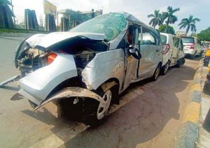इन्दौर। सत्यसांई चौराहे के पास कल रात तेज गति से आती एक कार के चालक ने बाइक सवार तीन युवकों को टक्कर मार दी। इस घटना में एक युवक जितेंद्र पिता नरवरसिंह की मौके पर मौत हो गई, जबकि उसके दो साथी मुकुंद और नीरज घायल हो गए। दुर्घटना के बाद कार डिवाइडर से टकराकर क्षतिग्रस्त हो गई। पुलिस ने कार जब्त कर ली। विजय नगर पुलिस ने बताया कि कार में सवार लोग शराब पिए हुए थे। फिलहाल पुलिस मामले की जांच कर रही है।