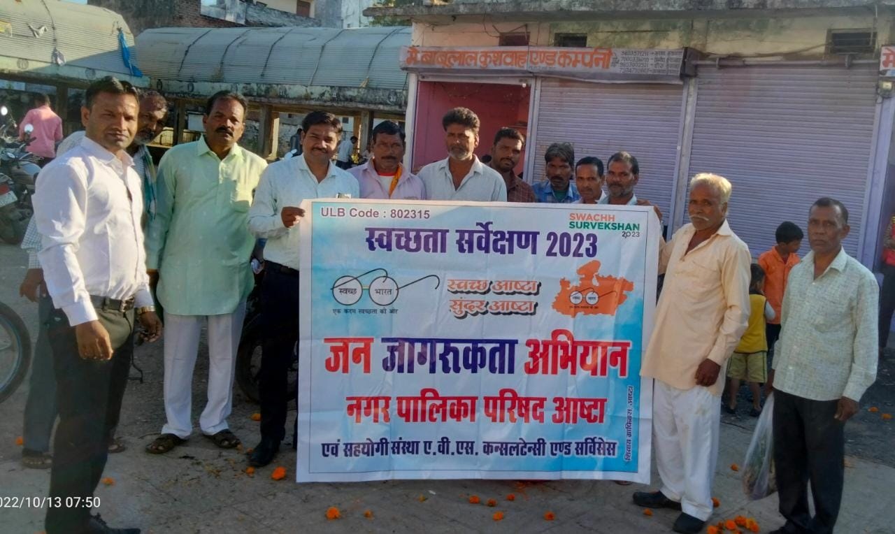 इस प्रकार सब्जी मंडी के व्यापारी संघ को स्वच्छता के प्रति भी जागरूक किया जिसमें बताया गया कि अपनी.अपनी दुकानों के ऊपर दो डस्टबिन रखें नीला कलर के डस्टबिन सूखा कचरा डालें और हरे कलर के डस्टबिन में गीला कचरा डालें गीले कचरे से कंपोस्टिंग से बने खाद के बारे में बताया कि आप अपने घर पर भी गीले कचरे से होम कंपोस्टिंग खाद बना सकते हैं जोकि छोटे.छोटे पेड़ पौधों में वह खाद लाभदायक होता है हमें मंडी परिसर में स्वच्छता बनाए रखना है और स्वच्छता बनाए रखना हमारा कर्तव्य है जिससे कि हमारा आष्टा शहर स्वच्छए स्वस्थ और सुंदर बना रहे हमारे आसपास के स्थान को भी स्वच्छ और सुंदर बनाए रखें स इस अवसर नगर पालिका स्वच्छता प्रभारी मनीष श्रीवास्तव एव सहयोगी संस्था एवीएस कंसलटेंसी की टीम ज्ञान सिंह बामनिया, मोह मद अकबर अंसारी, देवराज, लीलाधर मालवीय सब्जी व्यापारी संघ अध्यक्ष जुबेर राइन बाबूलाल कुशवाह विनोद कुशवाह हंसराज कुशवाह मोहन कुशवाह नरेंद्र कुशवाह रमेश मनीष कुशवाह राहुल कुशवाह पवन बागवान दीपसिंह पन्नालाल गणेश रघुनंदन चंदरसिंह भेरु लाल अजय कुशवाह आदि उपस्थित रहे।