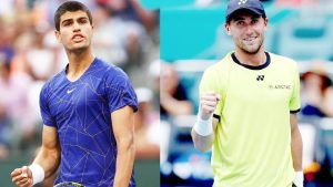 न्यूयॉर्क। स्पेन के युवा टेनिस स्टार कार्लोस अल्कारेज और नॉर्वे के कास्पर रूड यूएस ओपन के फाइनल में पहुंच गए हैं। दोनों ही खिलाड़ी रविवार को होने वाले खिताबी मुकाबले में अपनी पहली ग्रैंडस्लैम ट्रॉफी जीतने के साथ ही नंबर एक ताज भी हासिल करना चाहेंगे। साथ ही यूएस ओपन को इस बार नया चैंपियन भी मिलेगा। अल्कारेज यदि खिताब जीतते हैं तो यूएस ओपन को 32 वर्ष बाद सबसे युवा चैंपियन मिलेगा। 19 वर्षीय कार्लोस अल्कारेज ने 4 घंटे 19 मिनट तक चले सेमीफाइनल मुकाबले में मेजबान अमेरिका के 24 वर्षीय फ्रांसिस टियाफो को 6-7(6), 6-3, 6-1, 6-7(5), 6-3 से पराजित किया।