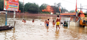 लगातार बारिश के बीच आज तीसरे दिन भी शिप्रा नदी उफान पर नजर आ रही है। पिछले दो दिनों से रामघाट से लेकर छोटे पुल तक मंदिर और कई घाट जलमग्न नजर आ रहे थे। आज भी सुबह करीब-करीब वैसी ही स्थिति दिखाई दे रही थी। बताया जाता है कि कल शाम से उज्जैन में बारिश का दौर थम गया था, लेकिन इंदौर और देवास की ओर से आ रहे पानी के कारण शिप्रा का जलस्तर अभी भी बढ़ा हुआ है।