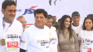 केंद्रीय मंत्री पीयूष गोयल ने आज मुंबई में ‘अहिंसा रन’ कार्यक्रम में भाग लिया। इस दौरान उन्होंने कहा, ‘जिस तरह से भारत में खेल सुविधाएं बढ़ रही हैं, जिस तरह से भारत विभिन्न खेल प्रतियोगिताओं में पदक ला रहा है। मैंने मुंबई में विश्व स्तरीय स्पोर्ट्स कॉम्प्लेक्स बनाने का वादा किया है, यह तभी संभव होगा जब सभी हमारे साथ खड़े होंगे।’