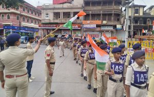 हाथों में तिरंगा थाम निकले पुलिसकर्मी और स्कूली बच्चे