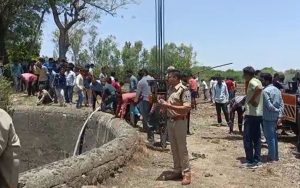 नीमच| नीमच सिटी थाना क्षेत्र के गाँव ढ़ोलपूरा में कुँए से पानी का टैंकर भरने गया ट्रैक्टर ड्राइवर ट्रैक्टर टैंकर सहित कुँए में गिरा। ड्राइवर की मौत, बताया जा रहा है कि कुए की गहराई 130 फीट हैं जिसमें 3 मोटरों से पानी को तोड़ा जा रहा है ताकि कुए से आसानी से ट्रैक्टर ,टैंकर को बाहर निकाला जाए । घटना की सूचना के बाद प्रशासन ने ग्रामीणों की मदद से रेस्क्यू ऑपरेशन शुरू किया मौके पर सीआरएफ की टीम भी मौजूद हैं । फिलहाल ड्राइवर की कोई जानकारी नहीं मिली है रेस्क्यू ऑपरेशन जारी है रेस्क्यू ऑपरेशन जा रही है।