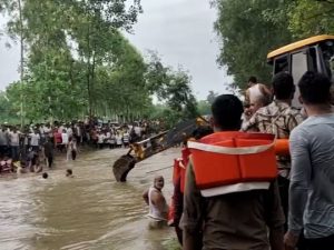 जानकारी के मुताबिक बुधवार देर शाम सहारनपुर के देहात कोतवाली क्षेत्र के बोंदकी गांव में एक धार्मिक कार्य से लौट रहे करीब 45 से ज्यादा श्रद्धालुओं से भरी ट्रैक्टर ट्रॉली ढमोला नदी के तेज बहाव में फंस गई. इसके बाद जब चालक ने ट्रैक्टर ट्रॉली को नदी के पानी के तेज बहाव से निकाला तो वो अनियंत्रित हो गई और पलट गई. जिसके बाद सभी लोग तेज बहाव में बह गए.