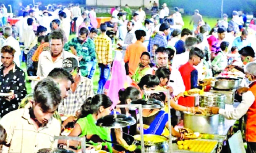 मुख्यमंत्री के कार्यक्रम में निर्वाणा में इस तरह भोजन के लिए जुटे थे सैकड़ों लोग