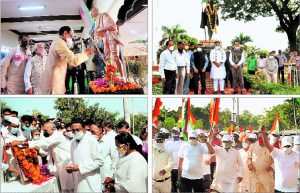 भोपाल। आज राष्ट्रपिता महात्मा गांधी और पूर्व प्रधानमंत्री लाल बहादुर शास्त्री की जयंती है। इस अवसर पर कृतज्ञ राष्ट्र उन्हें याद कर रहा है। राजधानी में राजनीतिक पार्टियों के नेताओं ने पुरानी विधानसभा स्थित गांधी जी की प्रतिमा पर माल्यार्पण कर उन्हें श्रद्धा सुमन अर्पित किया। प्रोटेम स्पीकर रामेश्वर शर्मा ने विधानसभा में बापू की प्रतिमा पर माल्यार्पण एवं पुस्तकालय में शास्त्री जी के चित्र पर पुष्पांजलि कर उन्हें नमन किया। इस अवसर पर विधानसभा के प्रमुख सचिव अवधेश प्रताप सिंह जी विशेष रूप से उपस्थित रहे। मुख्यमंत्री शिवराज सिंह चौहान ने गांधी भवन में पुष्पांजलि अर्पित गांधी को नमन किया। वहीं कांग्रेस प्रदेश अध्यक्ष कमलनाथ, पूर्व मुख्यमंत्री दिग्विजय सिंह ने पुरानी विधानसभा में गांधी जी को श्रद्धांजलि दी।