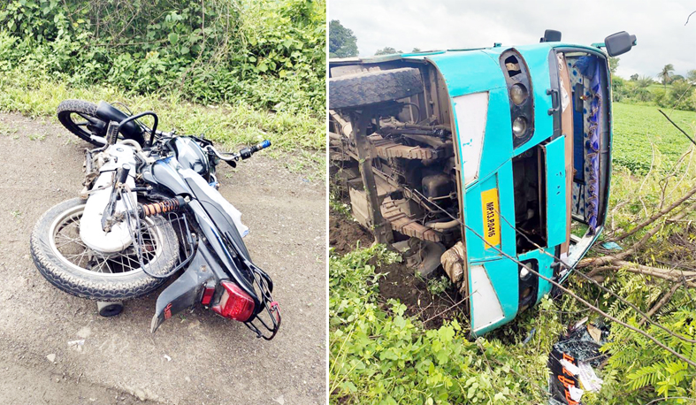 • यात्रियों से भरी बस ने बाईक सवार दंपत्ति को बुरी तरह कुचला