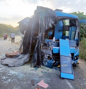 उज्जैन। बीती रात 3 बजे मक्सी के समीप भीषण हादसा हो गया। उत्तरप्रदेश से अहमदाबाद जा रही यात्रियों से भरी वीडियो कोच बस जब मक्सी के समीप दोंता पुलिया से गुजर रही थी, तब इसी दौरान सामने से तेज गति से आए ट्रक ने बस को टक्कर मार दी। दुर्घटना इतनी जोरदार हुई कि बस बुरी तरह से क्षतिग्रस्त हो गई और अंदर सो रहे तीन यात्रियों की वहीं मौत हो गई जबकि 15 से ज्यादा घायल हो गए। हादसा होने के बाद मौके पर आसपास के लोग जमा हो गए और दो थानों के पुलिस वहाँ आ गई। घायलों को जिला अस्पताल लाया गया जहाँ दो महिलाओं की मौत हो गई।