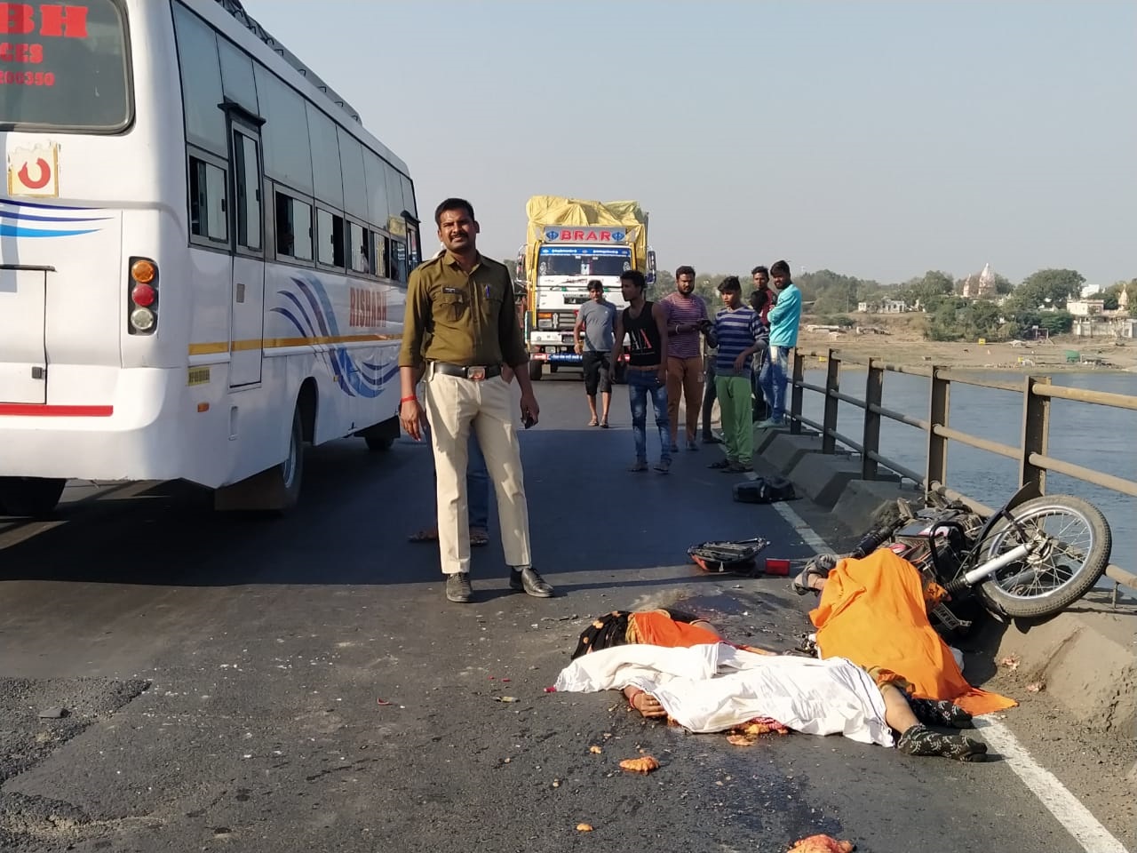 जानकारी के अनुसार मोरटक्का ओमकारेश्वर के बीच ग्राम कोठी निवासी शिवराम (52) पुत्र भाई राम बलाई अपनी पत्नी जीवंती बाई (47)के साथ टीवीएस मोपेड पर अपने रिश्तेदारों से मिलने एवं सामान खरीदने बड़वाह गए थे। बुधवार शाम 3:45 बजे घर लौटते समय मोरटक्का पुल पर सीमेंट से भरे साथ चल रहे ट्रक ने पीछे से टक्कर मारी ट्रक के पिछले पहिए में आने से पति-पत्नी की मौके पर ही मौत हो गई व शव बुरी तरह कुचल गए थे। जानकारी मिलते ही मौके पर पहुंचे मांधाता टीआई बलराम राठौड़ ने बताया कि दोनों शवों को पोस्टमार्टम के लिए ओमकारेश्वर भेजा गया, जहां से शव को परिजनों को सौंप दिया गया ट्रक ड्राइवर को गिरफ्तार कर लिया गया है।